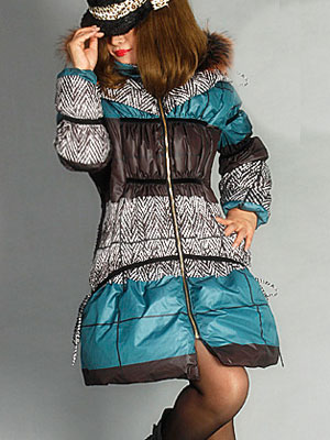 版型说明: 帽子可拆卸,貉子毛领子,貉子毛帽沿,双层翻领,可脱卸帽子,防水面料双层内胆,绝不跑绒,以咖啡色带小白格为主色调,再融入深红色黑条格子和橘红色黑条格子面料搭配,袖子和身围加入间隔均匀的弹力绒带,起到点缀而收身的效果,下摆弹力绒带穿拉丝蝴蝶结,围绕衣服一圈,可以使下摆能有收缩效果,设计师的灵感和精工的裁剪和制作把这款羽绒服拼接的如此的完美无暇。