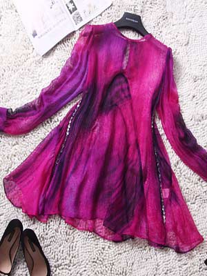 描述:欧洲站 浪漫的跨年烟花~渐变玫红色 极女人透视飘逸真丝上衣批发