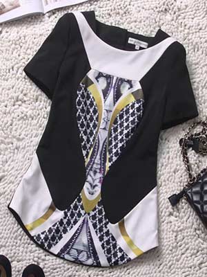 服装名称: 2014春夏新品 女装韩版短袖拼色修身显瘦圆弧度下摆T恤批发
