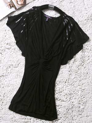 描述:外贸原单2014新款大深领蝙蝠袖T恤金属片肩超弹打底衫批发