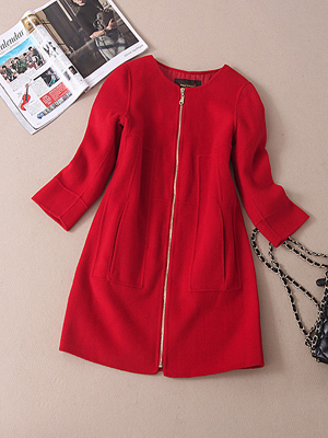 服装名称: 14秋季新款 欧洲站高档中长款拉链中袖无领双面羊绒大衣批发