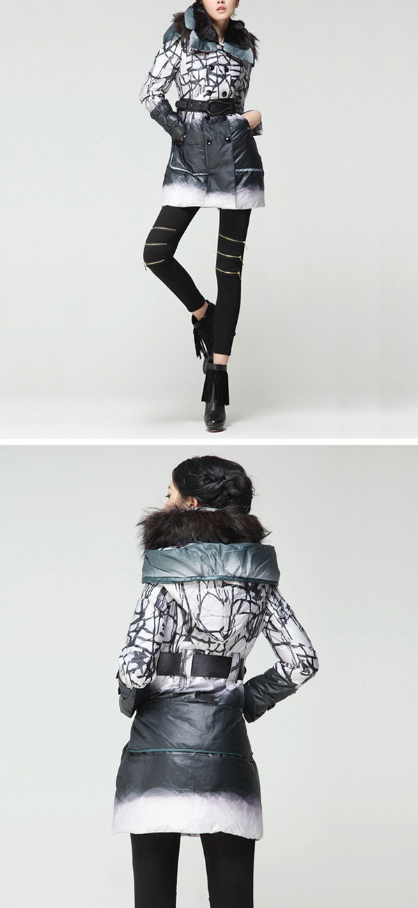 服装名称: 特价【MOON IN WELLS】羽绒服,带毛领加厚印花羽绒服批发