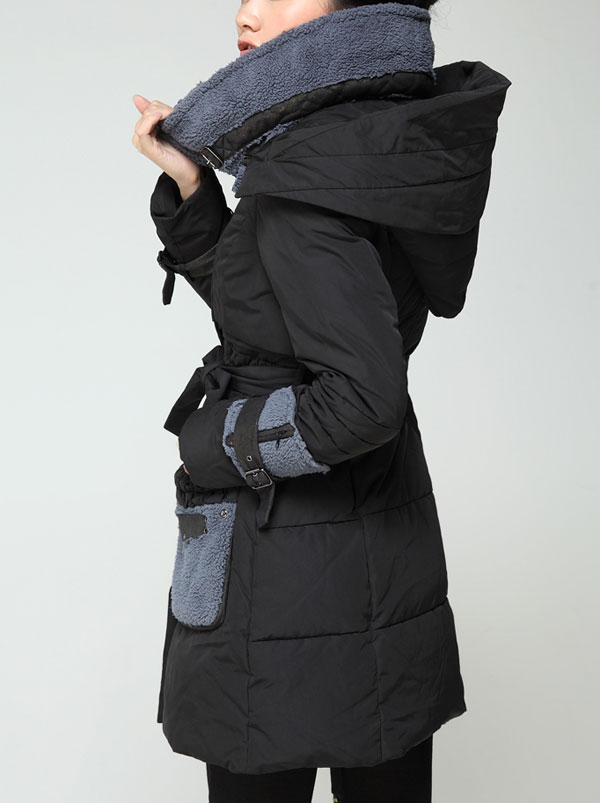 商品颜色:黑色 米色  面料材质:面料100%涤 仿真羊羔毛 填充80%羽绒