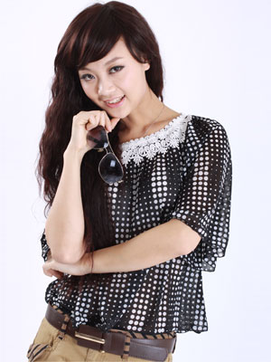 名称:2012新款日韩雪纺蕾丝小衫批发 五色