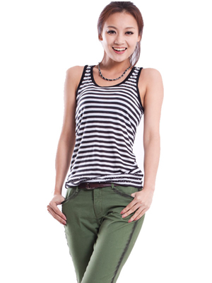 2012夏季新款吊带条纹小背心批发,日韩尾单外贸原单批发 10元批发 日韩原单纯棉背心T恤 青岛外贸服装批发
