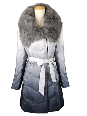 服装名称: 2012反季特价羽绒服,超大獭兔毛领渐变色长款羽绒服批发