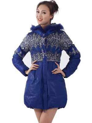 羽绒服描述:这是一款极具予含特色的长款羽绒服。经典的休闲花色+复古印花设计,宏观感觉自然亲和。韩版堆堆领,美感舒适;衣服整体色彩柔和,凸显自然;花苞式衣摆+蝴蝶结腰带收身,更好的修饰美好身段。细节复杂但不显累赘、整体流畅。