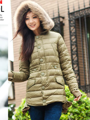 服装名称: 2012新款貉子毛大毛领中长款女士翻领羽绒服批发F1127