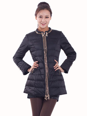 羽绒服描述:2012伊塑美新款多拉链黑色经典中长款羽绒服批发,此款羽绒服采用潮流的面料,修身的版型和独特的领帽设计,通过拉链可自由结合拆分的设计是一大亮点,简单的结构线设计,衣身绗线完美,整体的版型流畅,使整体款式简约又不失精致。