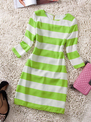 描述:2014春季新品 特价七分袖经典宽横条纹修身显瘦清新连衣裙批发,经典的条纹永不落伍,使这款衣衣具有永久的魅力,是物超所值的选择,时尚与经典的完美融合,光看这款时尚的衣衣已是爱不手。。
