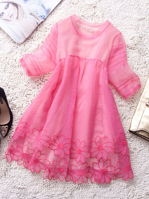 服装名称: 2014春夏装新款 双层轻薄纱网透气宽松腰大码绣花短款连衣裙批发