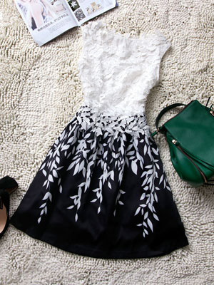 描述:2014春夏装新款 刺绣勾花百褶背心裙 黑白撞色叶子连衣裙批发,明星同款,质量做工很棒的一款连衣裙,上身蕾丝镂空,别看是白色的 上身很显腰身 避免了白色显胖的麻烦,凸凹有型 性感,下摆柳叶印花 蓬蓬公主裙的感觉。