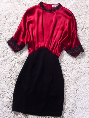 服装名称: 2014春夏新款蕾丝圆领蝙蝠袖收腰连衣裙柔软真丝一步裙女装批发