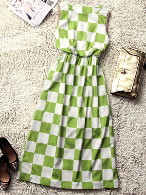 描述:2014春夏新品 正品原单圆领珍珠袖裙方格松紧收腰长宽连衣裙  65%聚酯   35%棉