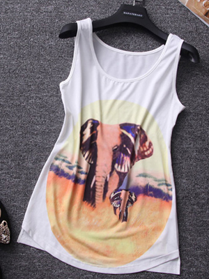 服装名称: 2014夏装新品 女装 外贸原单大象图像弧度下摆真丝白搭背心批发