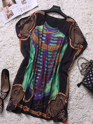 服装名称: 外贸原单正品 2014春夏女 印经典旗袍图案复古短袖真丝连衣裙批发