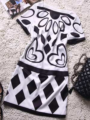 2014春季新品 外贸女装 经典黑白色短袖+松紧直筒小脚裤批发 2014夏季新款爆版欧洲站钉珠亮片印花真丝连衣裙批发
