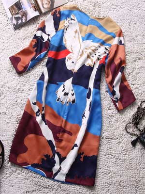 描述:外贸原单 2014春夏新品韩版圆领潮流图案七分袖修身连衣裙女装